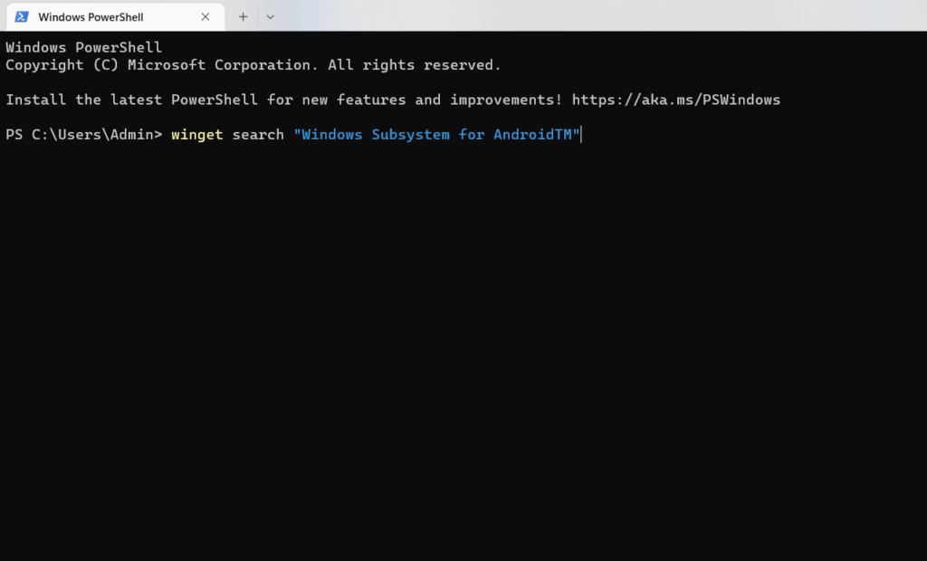 winget-søgning "Windows Subsystem for AndroidTM"