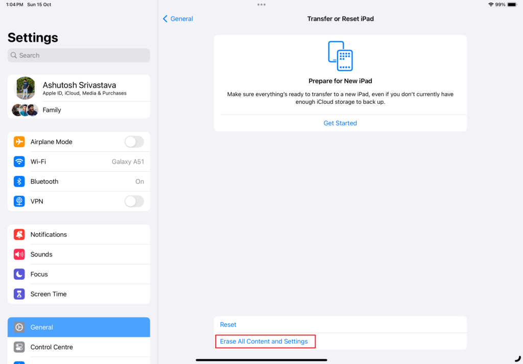 Hvis ingen af metoderne virkede for dig, er udførelse af en fabriksindstilling den sidste mulighed for dette problem. Når du nulstiller en iPad til fabriksindstillinger, sletter den alle data og gendanner alle dens indstillinger til fabriksindstillingerne. Dette kan hjælpe med at løse eventuelle softwareproblemer, der kan forhindre din Apple Pencil i at fungere korrekt.
