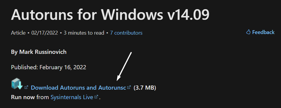 1.Klikherfor at fortsætte til Autoruns' downloadside og klikDownload Autoruns og Autorunsc.