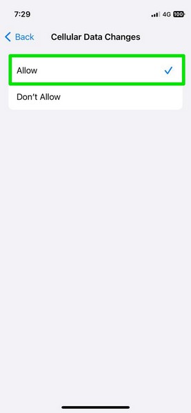 5. Sørg for, at ændringer i mobildata er tilladt i skærmtid