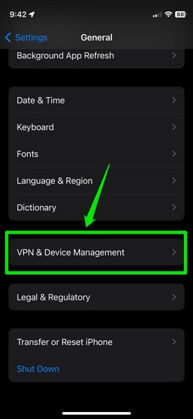 3.Rul ned for at findeVPN & Device Managementog tryk på den for at åbne.