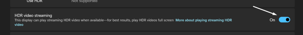 Hvis du har aktiveret High Dynamic Range (HDR) på din Windows 11-pc, er det muligt, at det forårsager dette problem. Dette skyldes, at HDR bruger omfattende GPU-ressourcer til at afspille videoer i høj opløsning.