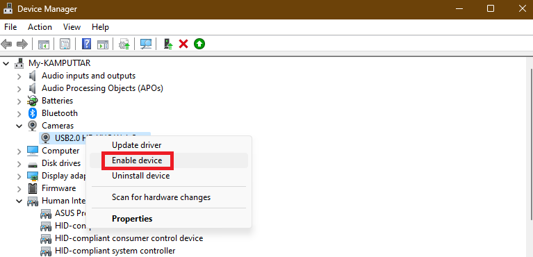 5.Højreklik på driveren igen og vælgAktiverchaufførvalgmulighed.