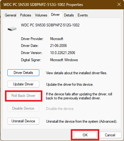 Hvis du får 0x0 0x0-fejlkoden efter installation af en Windows-opdatering eller opdatering af en driver, kan det muligvis løse problemet for dig at rulle tilbage til den tidligere version. Følg disse trin for at rulle driveren tilbage i Windows 11.