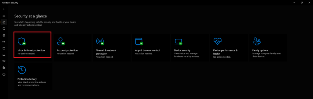 2.Klik påVirus- og trusselsbeskyttelse.