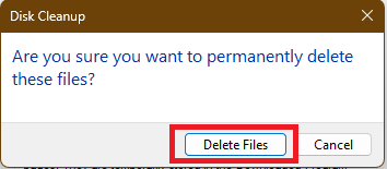 4.Bekræft sletningen ved at klikkeSlet filer.