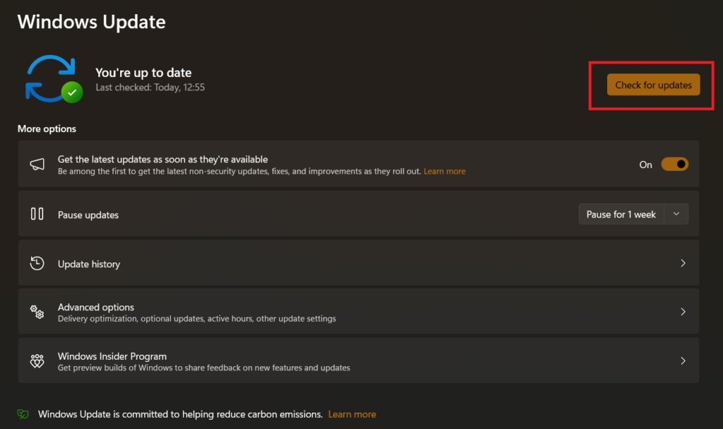 3.Tryk påSe efter opdateringerknappen og installer alle tilgængelige opdateringer.