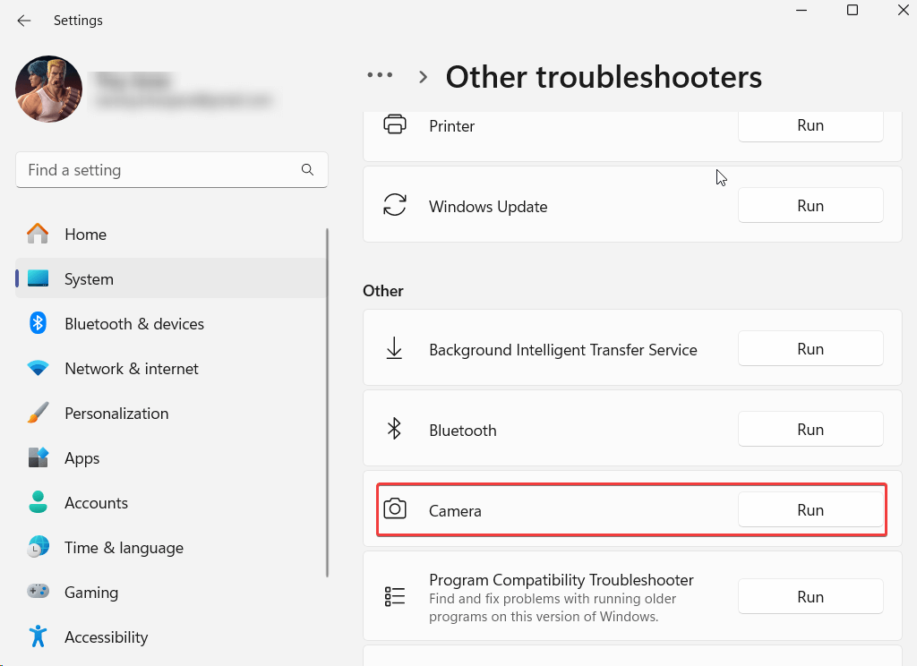 Trin 4 –UnderAndre fejlfindere,klik påLøbeved siden afKamera.