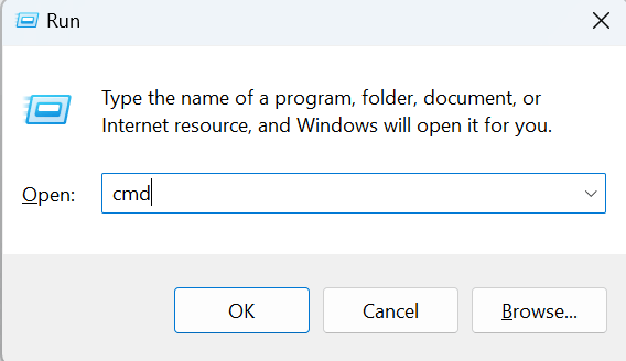 Trin 1 –ÅbnLøbedialogboksen ved at trykke på Windows + R-tasterne.