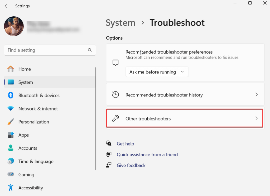 Trin 2 –Klik påSystemhvis den ikke allerede er åben som standard. Fra højre, rul ned og klik påFejlfinding.