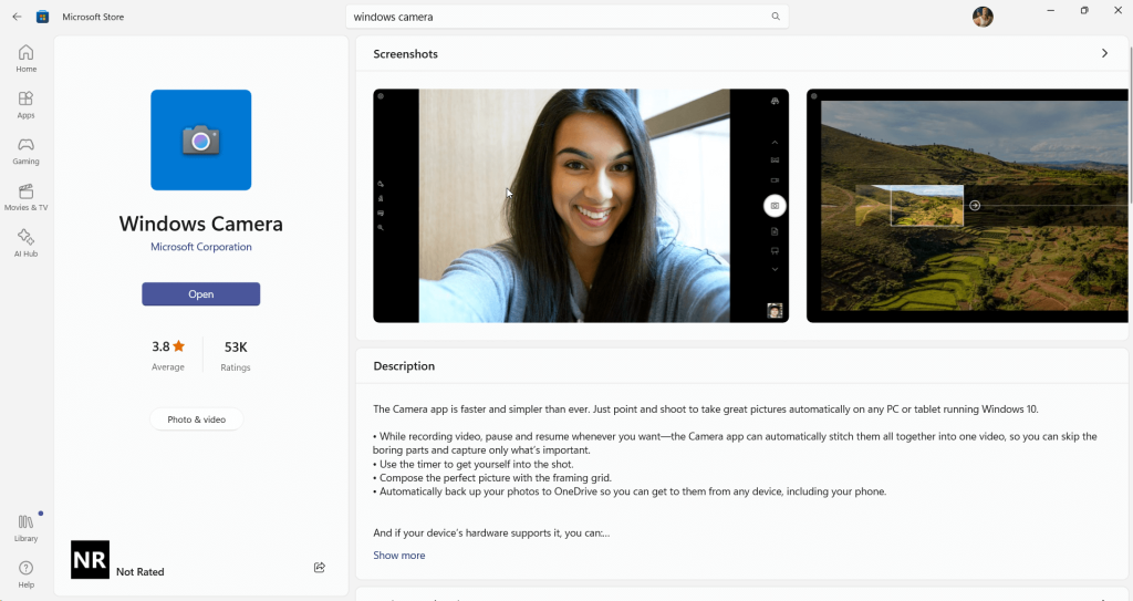 Trin 4 –ÅbnMicrosoft Storeog søg efter Windows-kamera.