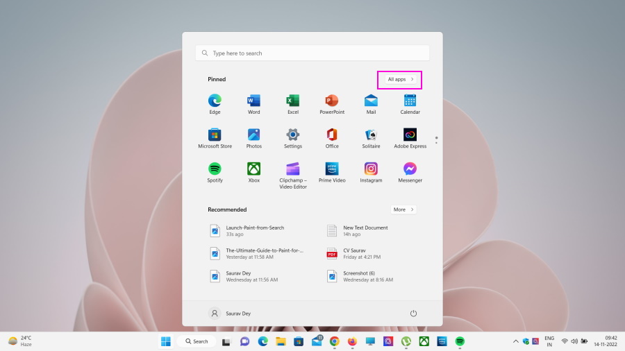 2.Klik påAlle apps >mulighed i det, søg efterKommandoprompt, og klik på den for at starte den.