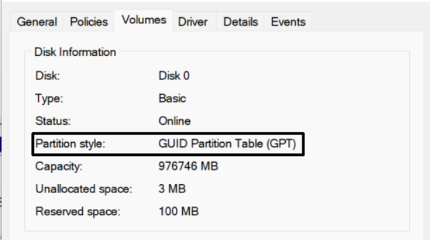 4.Til sidst skal du kontrollere, om dit lagerdrev bruger GPT- eller MBR-partitionsskemaet. Hvis den bruger MBR-partitionsskemaet, skal du konvertere det til GPT-partitionsskemaet for at udvide det. Du kan tjekkevedhæftet tutorial fra Microsoftat kende trinene til det samme.