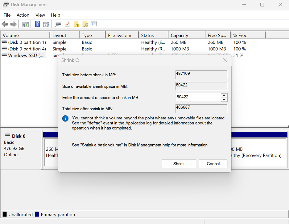 Tidligere i denne vejledning delte vi en rettelse, der bad dig om at udvide lagerdrevet ved at slette lagerdrevet lige ved siden af det drev, du vil udvide. Hvis det ikke virker, foreslår vi digkrympe det. Men gør det kun, hvis den tilstødende diskpartition har plads nok. Du kan følge nedenstående trin for at skrue ned for lydstyrken på din pc eller bærbare computer: