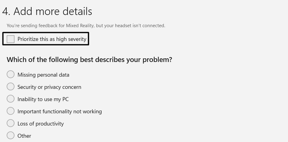 5.CheckPrioriter dette som høj sværhedsgradog vælg en mulighed, der matcher dit problem.