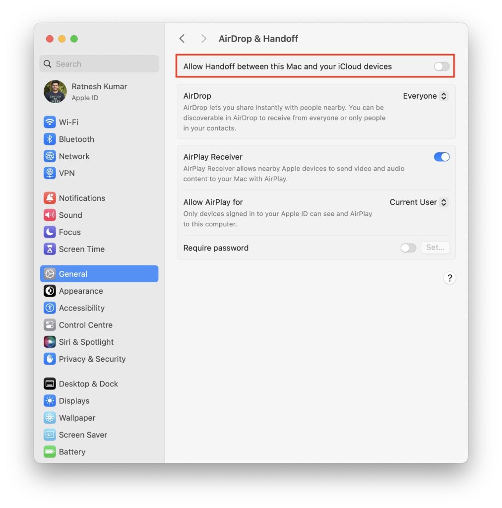 Den traditionelle metode til at aktivere og deaktivere funktionen kan være nyttig i denne situation. Sådan kan du slå Handoff-funktionen til/fra på iPhone, iPad, Mac og Apple Watch.