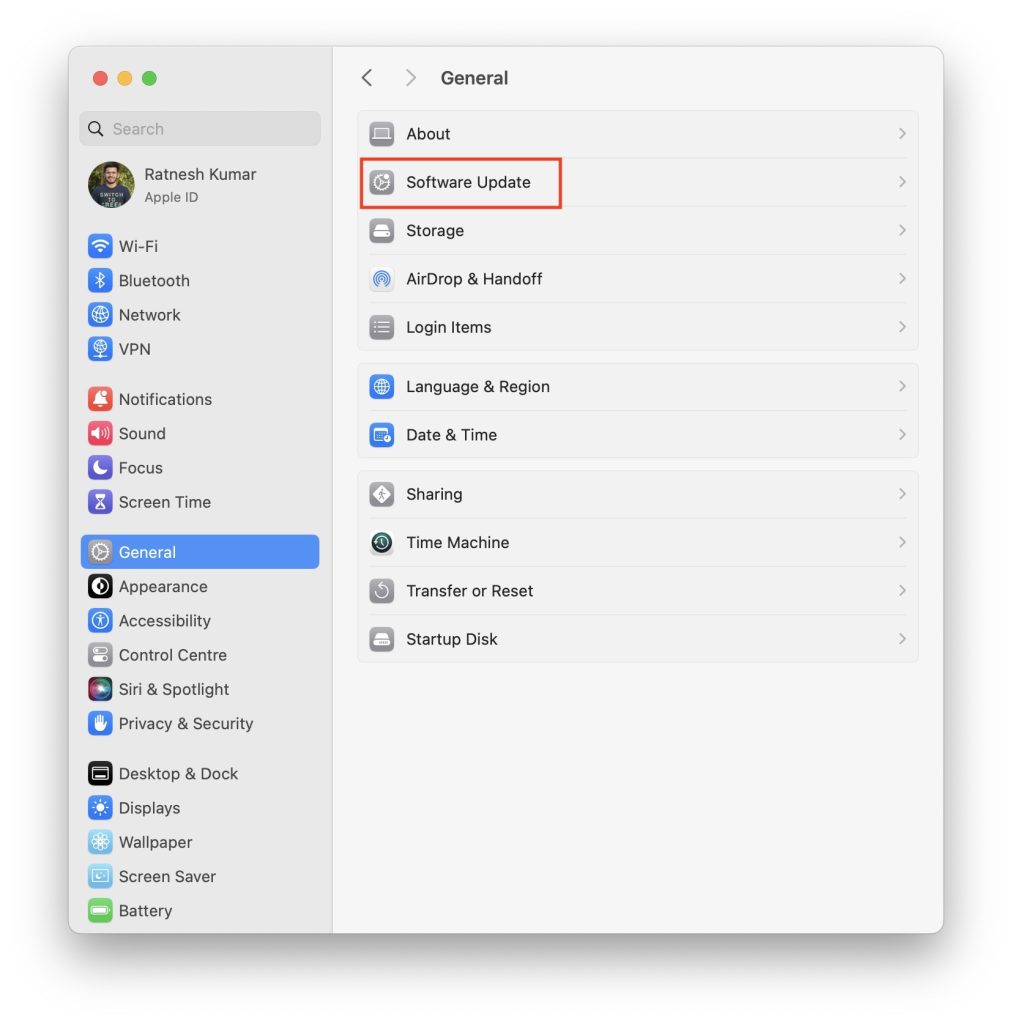 3.På næste skærm, klik påSoftwareopdatering.