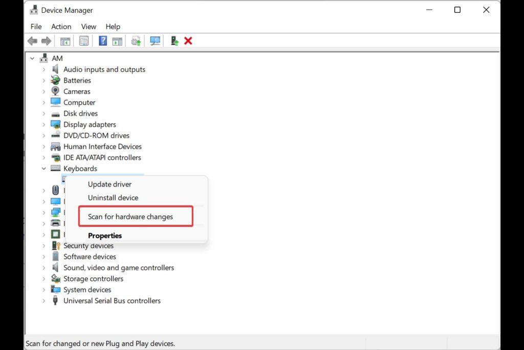 Hvis afbrydelse og gentilslutning af controlleren ikke virker, skal du bruge Enhedshåndtering til at tjekke for hardwareændringer. Følg disse trin for at gøre det: