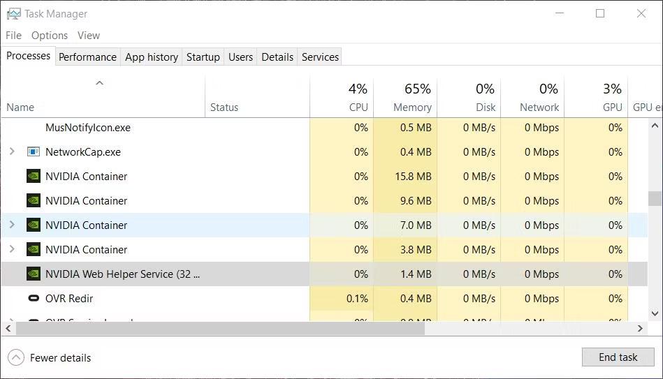 Trin 6: IProcesserfanen, skal du finde alleNVIDIAopgaver, der kører i baggrunden, og klik påAfslut opgavepå hver proces.