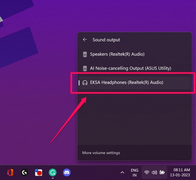 En anden almindelig ting, der nogle gange får brugere til at tro, at deres hovedtelefoner ikke fungerer i Windows 11, er, når de ikke er valgt til lyd automatisk. Du kan se, når du tilslutter hovedtelefoner eller øretelefoner i Windows 11, at systemet nogle gange "glemmer" at skifte standardlydenheden til de tilsluttede hovedtelefoner.