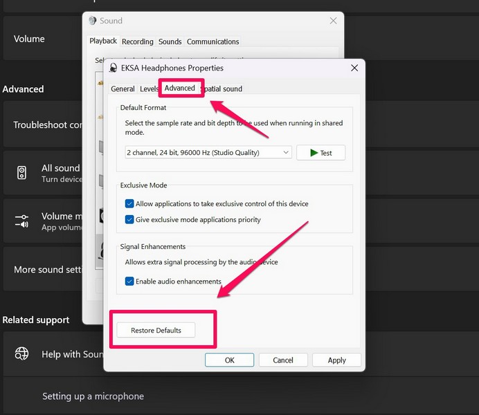 4. Gendan til standardindstillinger for hovedtelefoner i Windows 11