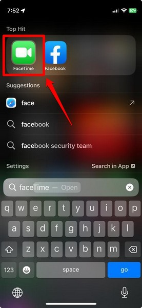 3.Når den er lukket,find FaceTime-appenogtryk på den for at genstarte denpå din enhed.