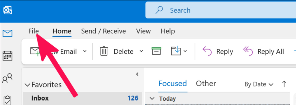 1.ÅbnMicrosoft Outlookapp på din Windows 11-pc i fejlsikret tilstand, og klik påFili topmenuen.