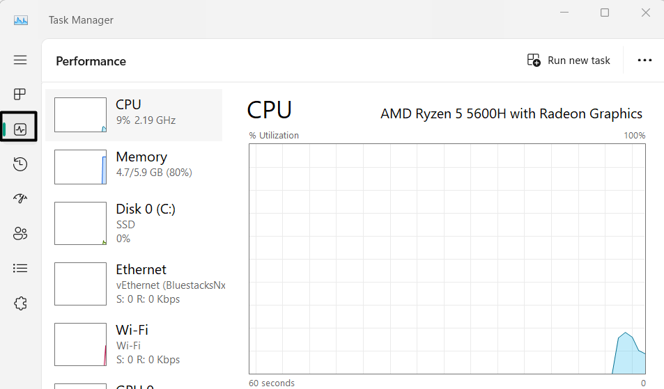 2.I denTask Managervindue, gå tilPræstationfanen og vælg netværkstypen.