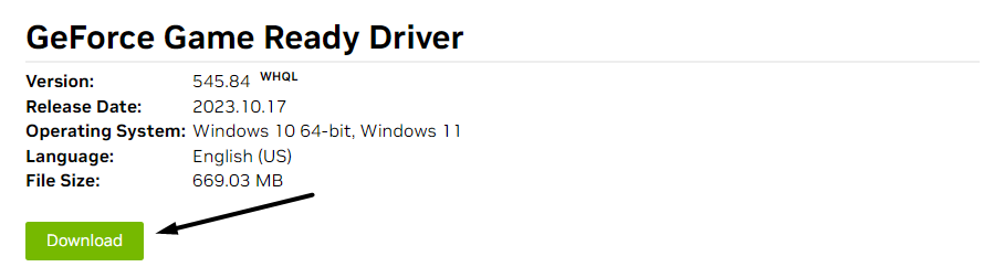 6.Når du er færdig, skal du klikke påDownloadknappen for at downloade grafikdriverens downloadfil på pc'en.