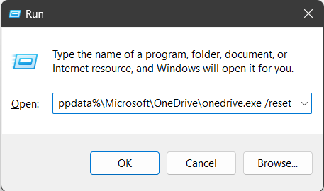 %localappdata%MicrosoftOneDriveonedrive.exe /reset