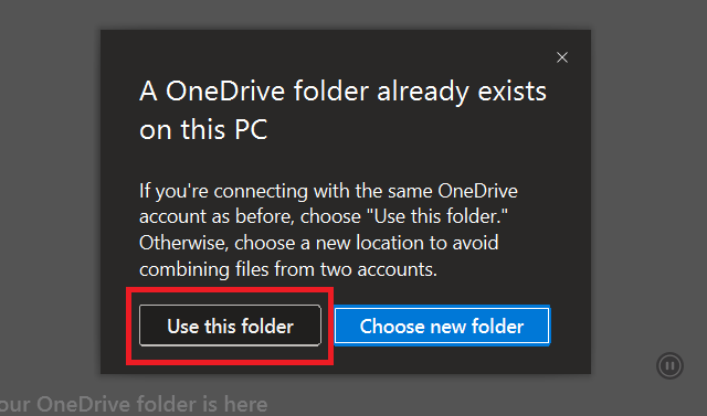 9.Følg instruktionerne på skærmen, indtil du serÅbn min OneDrive-mappevalgmulighed. Brug det til at starte OneDrive, og du er godt i gang.