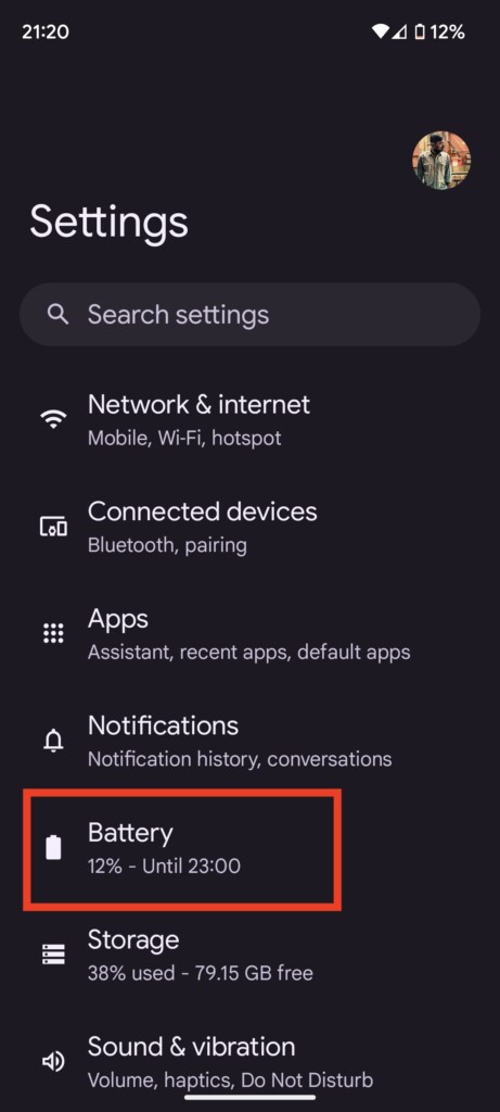2.Gå tilBatteriafsnittet i Indstillinger.