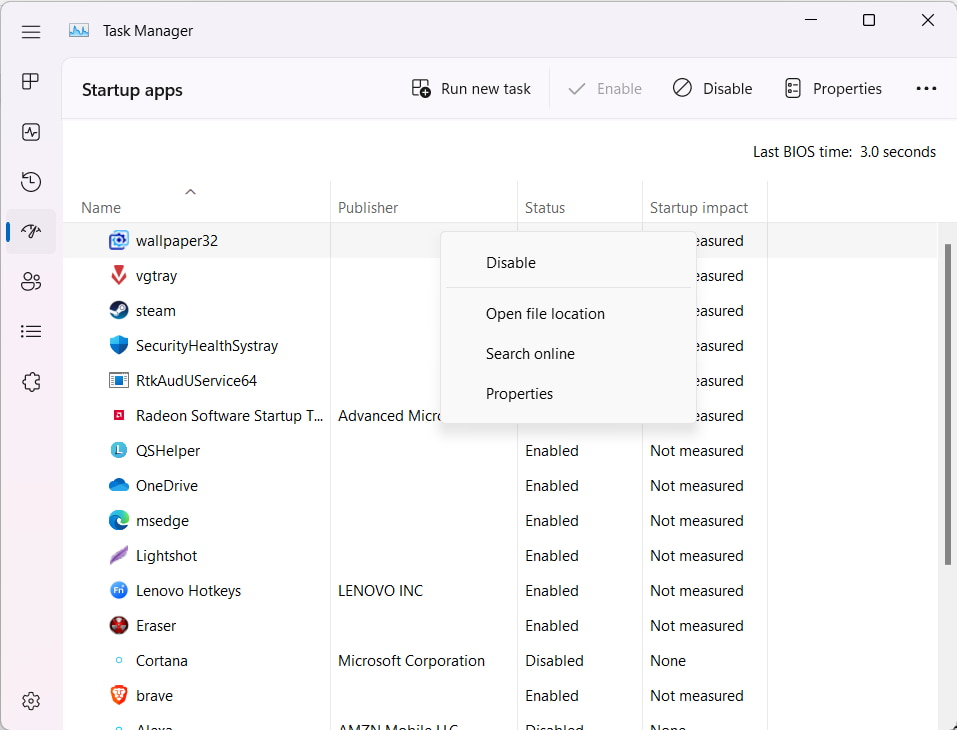 6.Flyt tilFanen Startog klik påÅbn Task Manager.