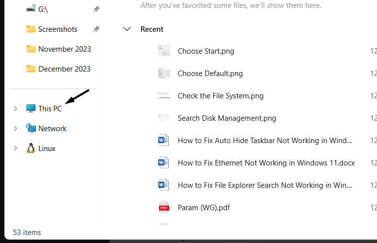 1.LanceringFil Explorerpå din Windows 11-enhed og vælgDenne pcmulighed til venstre.