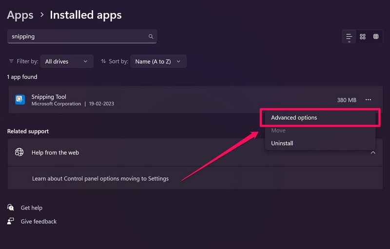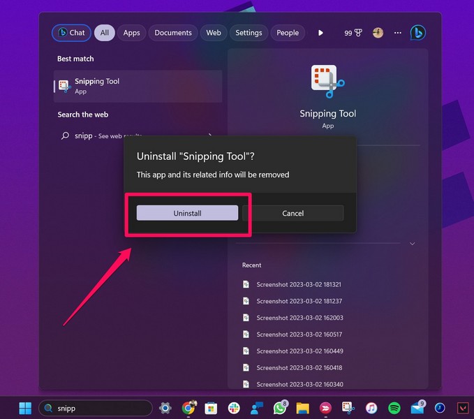 3. Følg instruktionerne på skærmenfor at afinstallere Snipping Tool-appen fra din Windows 11-enhed.