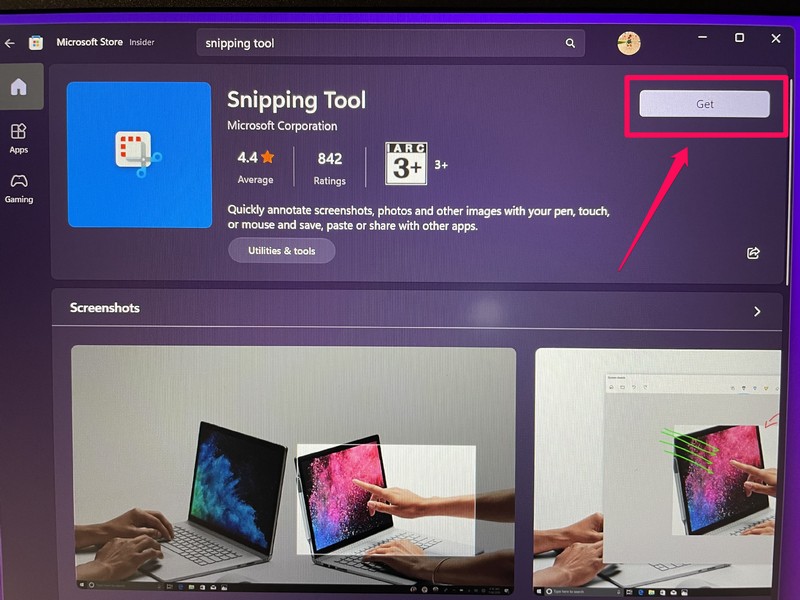 4.Efter afinstallationen,åbne Microsoft Storeog brug søgelinjen til at finde appen Snipping Tool.
