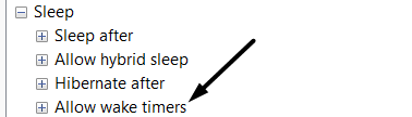 4.NårStrømindstillingerprompt åbnes, udvidSovesektion og udvid derefterTillad vækningstimereunderafsnit.