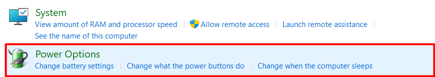 2.UnderSystem og sikkerhedsektion, klik påStrømindstillingerog klik derefter påSkift strømindstillinger.
