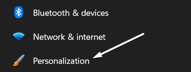 1.Åbn førstIndstillinger apppå dit system og vælgPersonaliseringmulighed fra venstre sidebjælke.