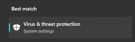 2.Klik nu videreVirus- og trusselsbeskyttelseunderBedste matchafsnittet for at starte værktøjet til fjernelse af malware.
