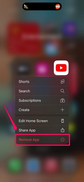 Hvis ingen af ovenstående metoder hjalp dig med at slippe af med fejlen "Noget gik galt, tryk for at prøve igen" i YouTube-appen, er det sidste du kan prøve at geninstallere appen på din iPhone. Geninstallation af YouTube-appen ville betyde at afinstallere den fra din iOS-enhed, og det vil slette alle appdata.