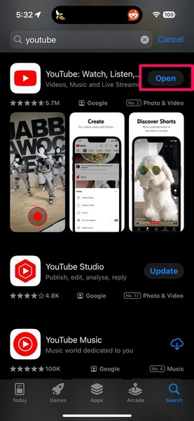 5.Hvis du finder en tilgængelig opdatering til YouTube-appen, skal du trykke påOpdater knapved siden af for at opdatere appen på din iPhone.