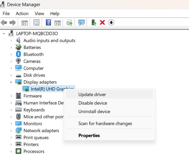 Trin 3:Højreklik på grafikdriveren og vælg "Opdater driver”.