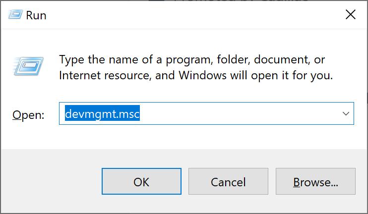 Trin 1:Tryk på Windows + R-tastkombinationen for at åbne dialogboksen Kør, skriv "Devgmt.msc” i tekstboksen, og tryk på Enter.