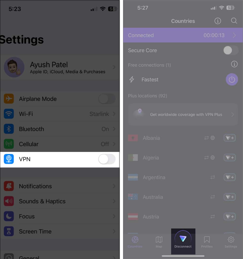 3. Sørg for, at din iPhone ikke er forbundet til VPN