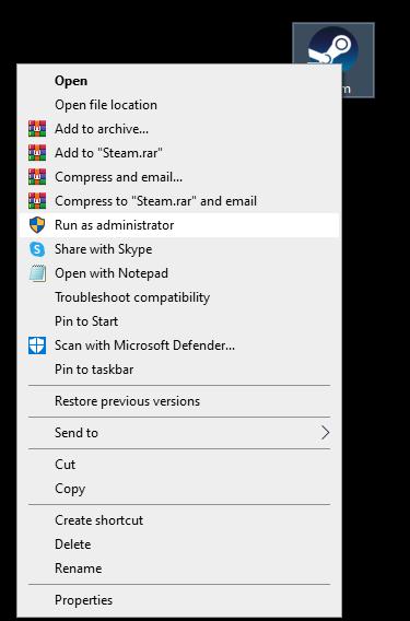 Metode 2: Åbn Steam-klienten med administratorrettigheder