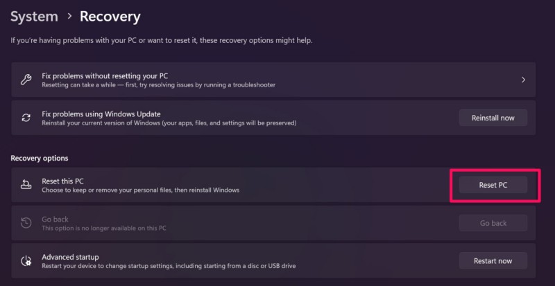 9. Nulstil din Windows 11 pc eller bærbare computer