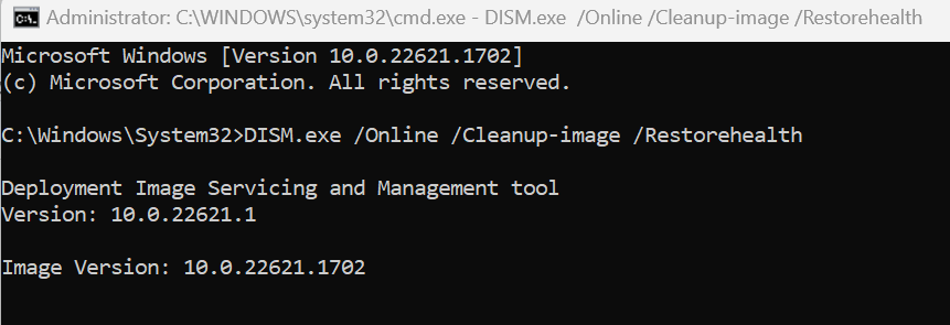 DISM.exe /Online /Cleanup-image /Restorehealth
