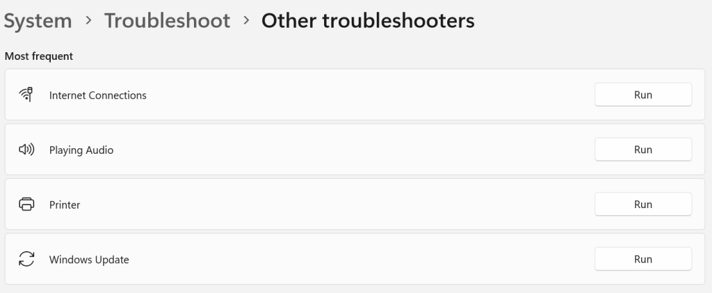 Trin 4:Find nuWindows Updatei listen over fejlfindere og klik påLØBEknappen ved siden af.