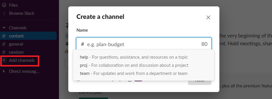 Kanaler på Slack er næsten identiske med Discord. Den eneste differentierende faktor er, at Discord giver dig mulighed for at oprette stemmekanaler, mens du på Slack kun kan have tekstkanaler.
